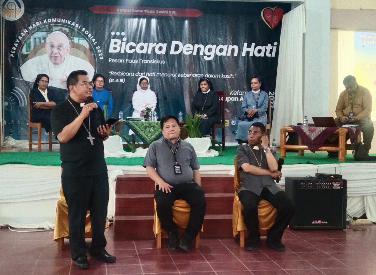 Sementara Mgr. Dominikus Saku menegaskan tentang pentingnya peran komsos dalam pertanian, pendidikan dan kehidupan keluarga. Dari semua yang penting itu, yang paling penting ialah berbicara dengan hati, berkarya dengan hati, mendengarkan dengan hati.