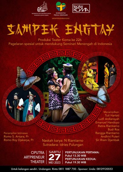 HIDUPKATOLIK.COM – Pementasan “Sampek Engtay” akan diselenggarakan di Ciputra Artpreneur Theater, Jakarta pada hari Sabtu, 27 Mei 2023 dengan 2 kali pertunjukan. Pertunjukan I pukul 13.30 WIB dan pertunjukan II pukul 19 .30 WIB.