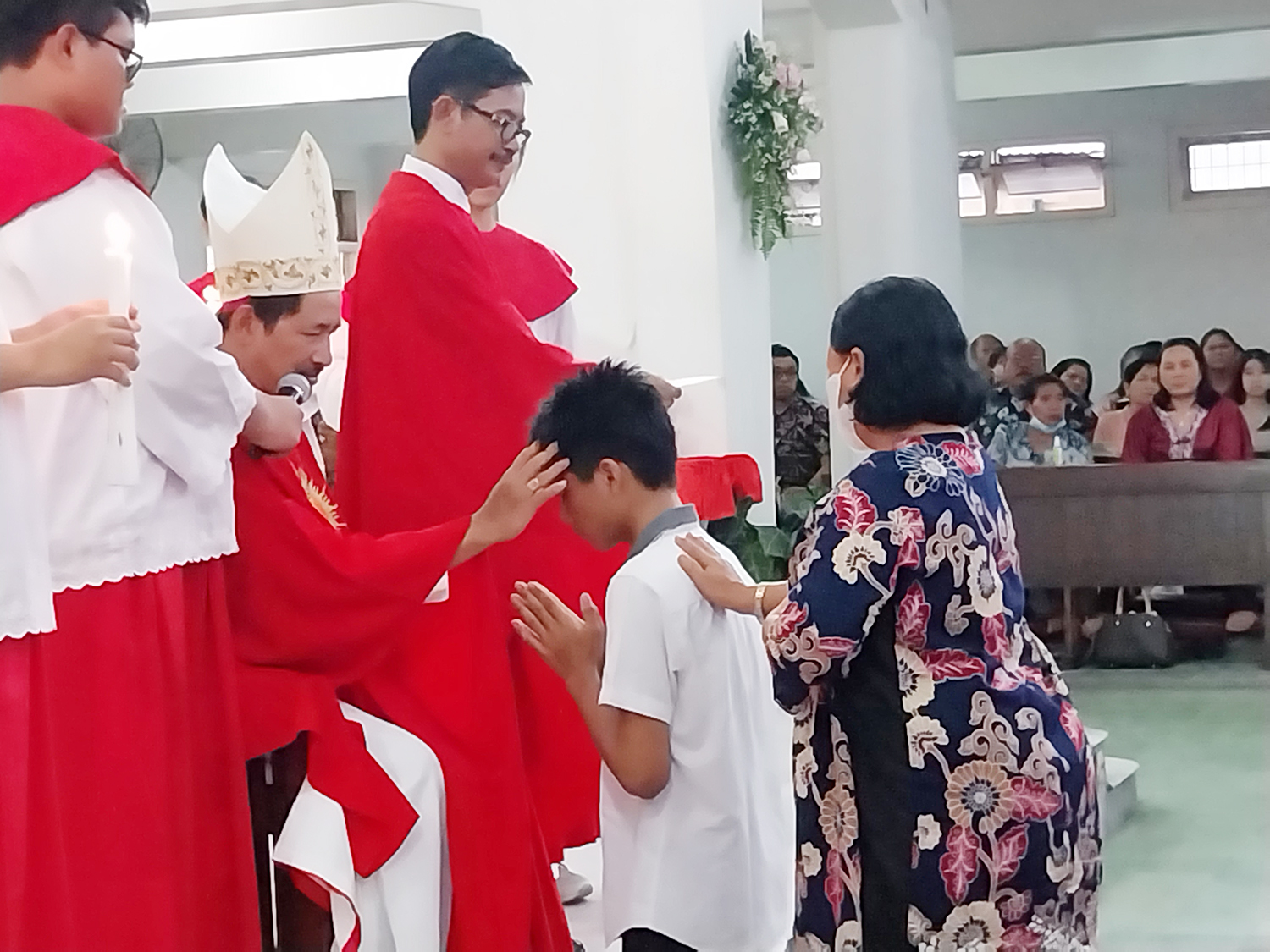 HIDUPKATOLIK.COM – Inilah kali pertama menjadi Uskup Tanjungkarang Mgr. Vinsensius Setiawan Triatmojo alias Mgr. Avien menerimakan Sakramen Krisma kepada 236 anak di Gereja Katedral Kristus Raja, Lampung, Sabtu, 27 Mei 2023.