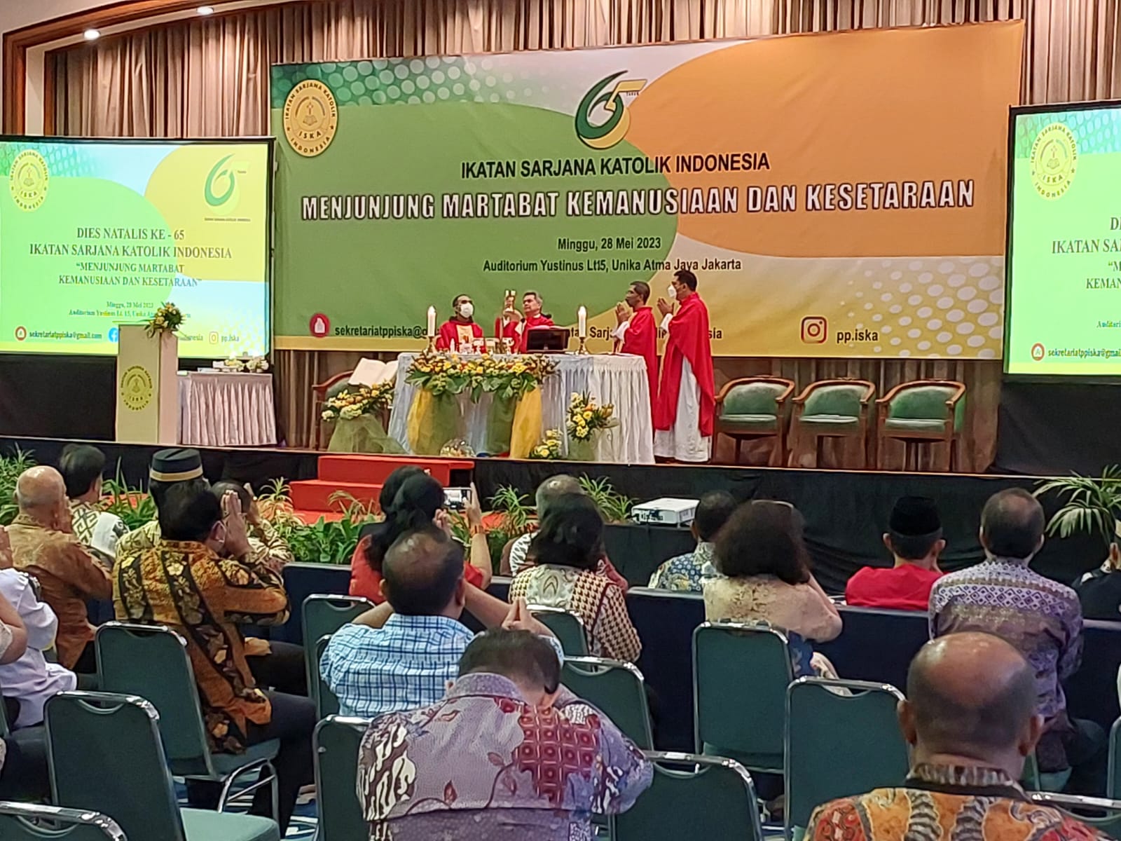 Bertempat di Auditorium Yustinus Universitas Katolik Indonesia Atma Jaya, Perayaan Ekaristi dirayakan secara konselebrasi, bertepatan dengan Hari Raya Pentakosta. Selebran utama adalah Mgr. Antonius, yang juga uskup Keuskupan Bandung. Sementara tiga konselebran adalah Romo Antonius Widyarsono, SJ, moderator Presidium Pusat (PP) ISKA; Romo Andreas Bernadinus Atawolo, OFM, moderator ISKA Dewan Pimpinan Daerah DKI Jakarta; dan Romo Stevanus Harry Yudanto, Pr dari Pastoran Atma Jaya.