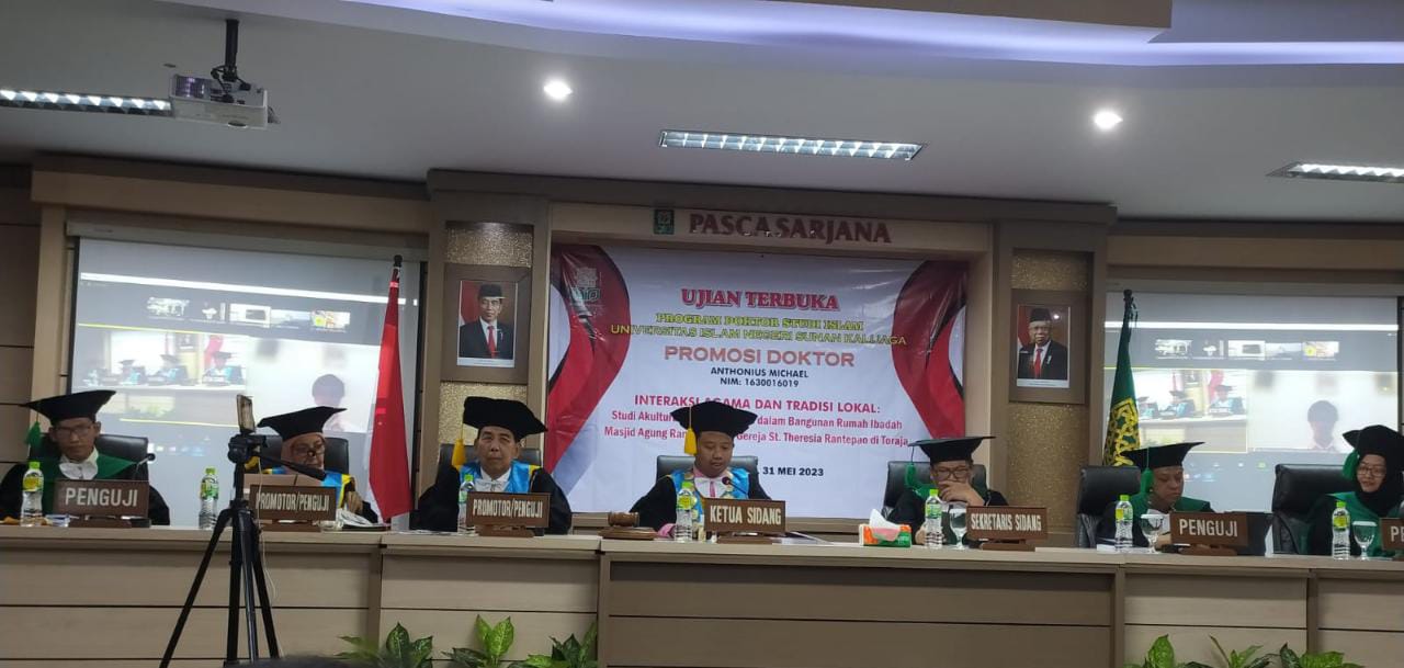Pastor Anthonius Michael setelah menempuh masa studi 7 tahun, terkendala karena pandemi, akhirnya menyelesaikan disertasi dengan judul “Interaksi Agama dan Tradisi Lokal: Studi Akulturasi dan Apropriasi dalam Bangunan Rumah Ibadah Masjid Agung Rantepao dan Gereja Santa Theresia Rantepao.” Hadir sebagai ketua sidang adalah Prof. Al Makin, Rektor UIN Sunan Kalijaga, didampingi 2 promotor dan para penguji.
