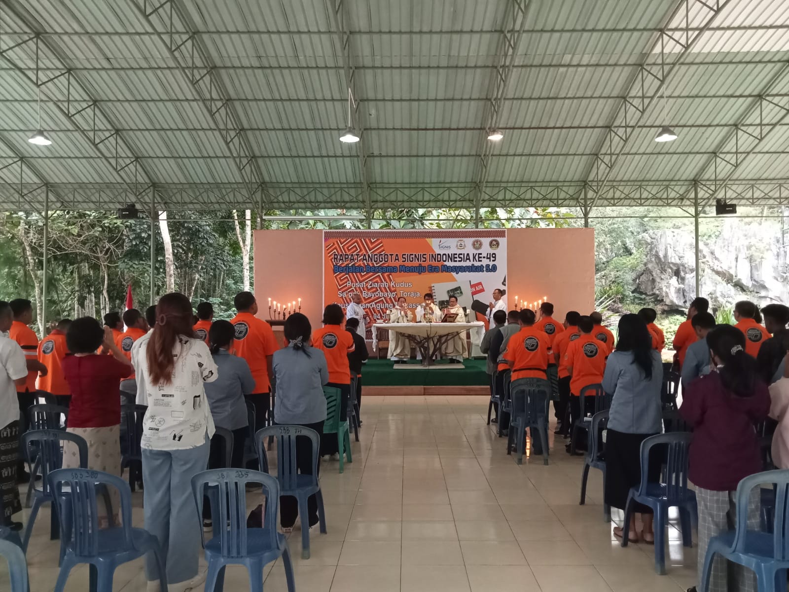 HIDUPKATOLIK.COM – Rapat Anggota SIGNIS Indonesia Ke-49 dibuka secara resmi dengan Perayaan Ekaristi yang dirayakan secara konselebrasi pada Rabu (31/5/2023) pagi di sebuah aula terbuka yang terletak di kawasan Pusat Ziarah Keluarga Kudus Nazaret Sa’pak Bayobayo di Tana Toraja, Sulawesi Selatan.