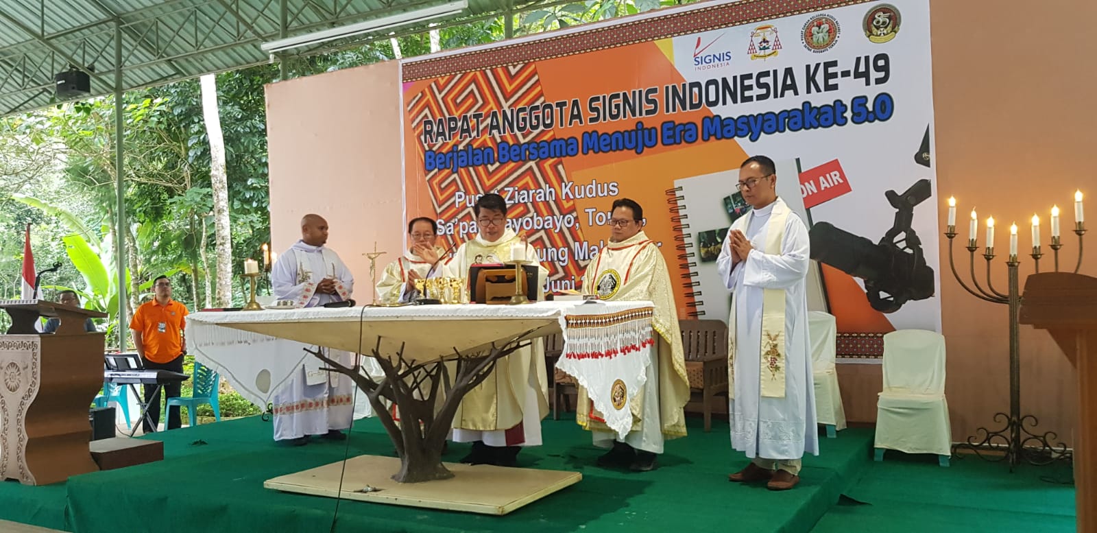 HIDUPKATOLIK.COM – “MARI kita belajar dari Bunda Maria. Setia dalam berbagi kabar sukacita bagi sesama. Ini yang perlu dikembangkan dalam karya pewartaan lewat media massa dan menjadi bentuk solidaritas yang harus dibagikan satu sama lain.” Demikian disampaikan Romo Steven Lalu pada Misa Pembukaan Rapat Anggota SIGNIS Indonesia Ke-49 di Sa’pak Bayobayo, Tana Toraja, Sulawesi Selatan, Rabu, 31/5/2023.