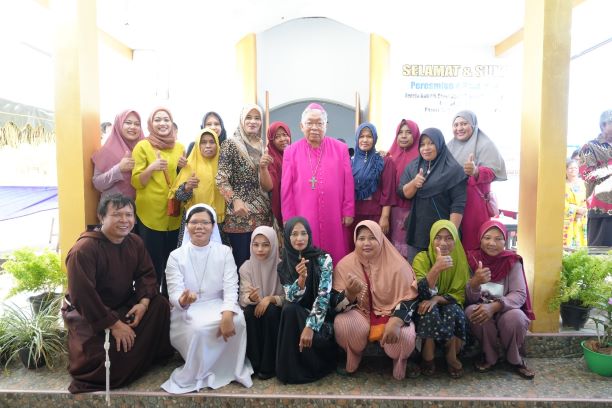 Pemandangan tak seperti biasanya juga ditemui di sini. Ketika melihat bahwa ibu-ibu Muslim melayani para tamu yang datang dan umat beragama lainnya yang turut hadir, Uskup mengatakan, “Hari ini adalah acara orang Katolik dan umat Muslim berada di barisan paling depan melayani kami, maka saat umat Muslim dan umat beragama lainnya membuat acara, umat Katolik juga harus berdiri di barisan depan untuk melakukan hal yang sama.”