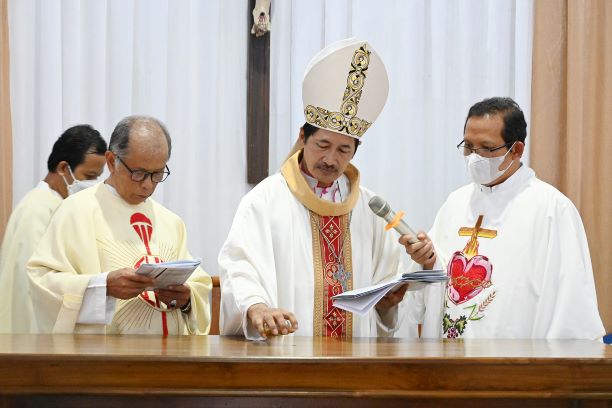 “Kristus sebagai dasar dari kehidupan umat beriman. Gedung gereja ada, maka walaupun jumlah umat hanya sepuluh KK yang berdoa di gereja ini, merayakan ekaristi, mendengarkan sabda Tuhan, dengan semua itu menjadi dasar dari Gereja. Gereja akan hidup tidak akan mati,” kata Uskup.
