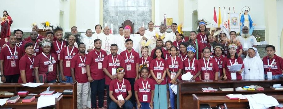 HIDUPKATOLIK.COM – Uskup Agung Merauke, Mgr. Petrus Canisius Mandagi MSC memimpin Misa perutusan pelepasan kontingen Indonesian Youth Day (IYD) Keuskupan Agung Merauke (KAMe) di Kapel Seminari Pastor Bonus pada Sabtu, 24 Juni 2023. Turut hadir dalam perayaan ini Vikjen, Pastor Hendrikus Kariwop MSC, Sekjen Pastor Johanes Juenmo Kandam, Ketua Komisi Kepemudaan Pastor Everardus Resubun MSC bersama enam imam konselebran dan seorang diakon. Sebelumnya, peserta IYD melakukan live-in, penguatan dari para nara sumber, dan rekoleksi.