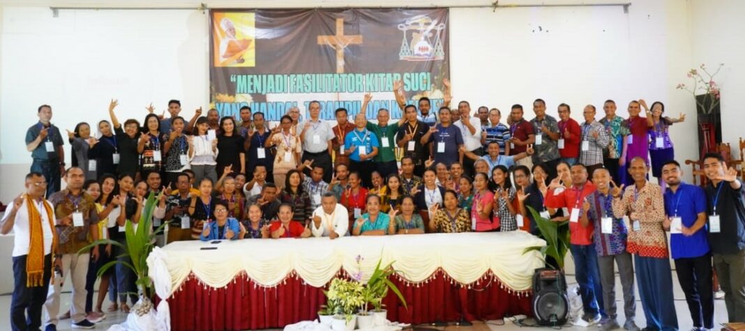HIDUPKATOLIK.COM – Uskup Atambua, Mgr. Dominikus Saku mengajak para imam paroki se-Keuskupan Atambua dan para peserta diklat fasilitator Kitab Suci Regio Nusra untuk membangun budaya membaca dan merenungkan Kitab Suci setiap hari dalam simulasi dan animasi bahan Bulan Kitab Suci Nasional (BKSN) 2023 kepada para pastor paroki sekeuskupan Atambua dan seluruh peserta di Aula Emaus Pastoral Central (EPC) Atambua, Sabtu, (5/8/2023).