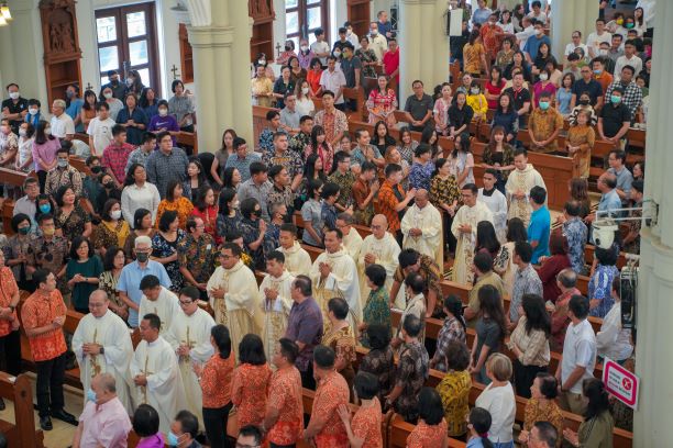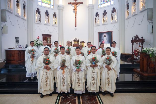 Misa diakhiri dengan potong kue ulang tahun oleh Romo Hadi, Romo Rudy, Romo Hardijantan, dan Romo Simon. Potongan kue ini diserahkan kepada lima imam tahbisan baru, sebagai simbol dukungan kepada imam baru. Setelah berkat penutup, lanjut dengan foto bersama. Juga diberi kesempatan bagi umat yang ingin bersalaman dengan para romo guna mengucapkan selamat. Hal ini ditanggapi dengan sangat antusias, terbukti dari barisan umat yang mengular sangat panjang untuk antri memberi selamat.