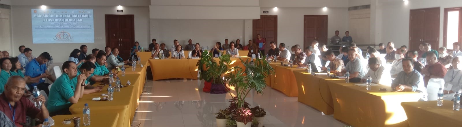 Dalam sambutannya Romo Evensius Dewantoro mengatakan, “hari ini 11 Paroki dan 2 Stasi di wilayah Dekenat Bali Timur berkumpul untuk melaksanakan pra-Sinode. Sebelumnya, kita telah melaksanakan FGD (Focus Group Discussion) di tingkat KBG (Komunitas Basis Gerejawi), pra-Sinode di tingkat paroki dan stasi.”