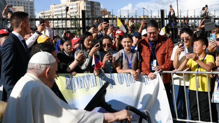 Setelah mendengarkan Paus dalam keheningan dan keheranan, setelah berdoa Salam Maria bersamanya dalam bahasa Mongolia, semua orang keluar dengan hormat, tersenyum dan bertepuk tangan, setelah akhirnya mengalami sendiri kunjungan yang tidak pernah berani mereka harapkan akan menjadi kenyataan.