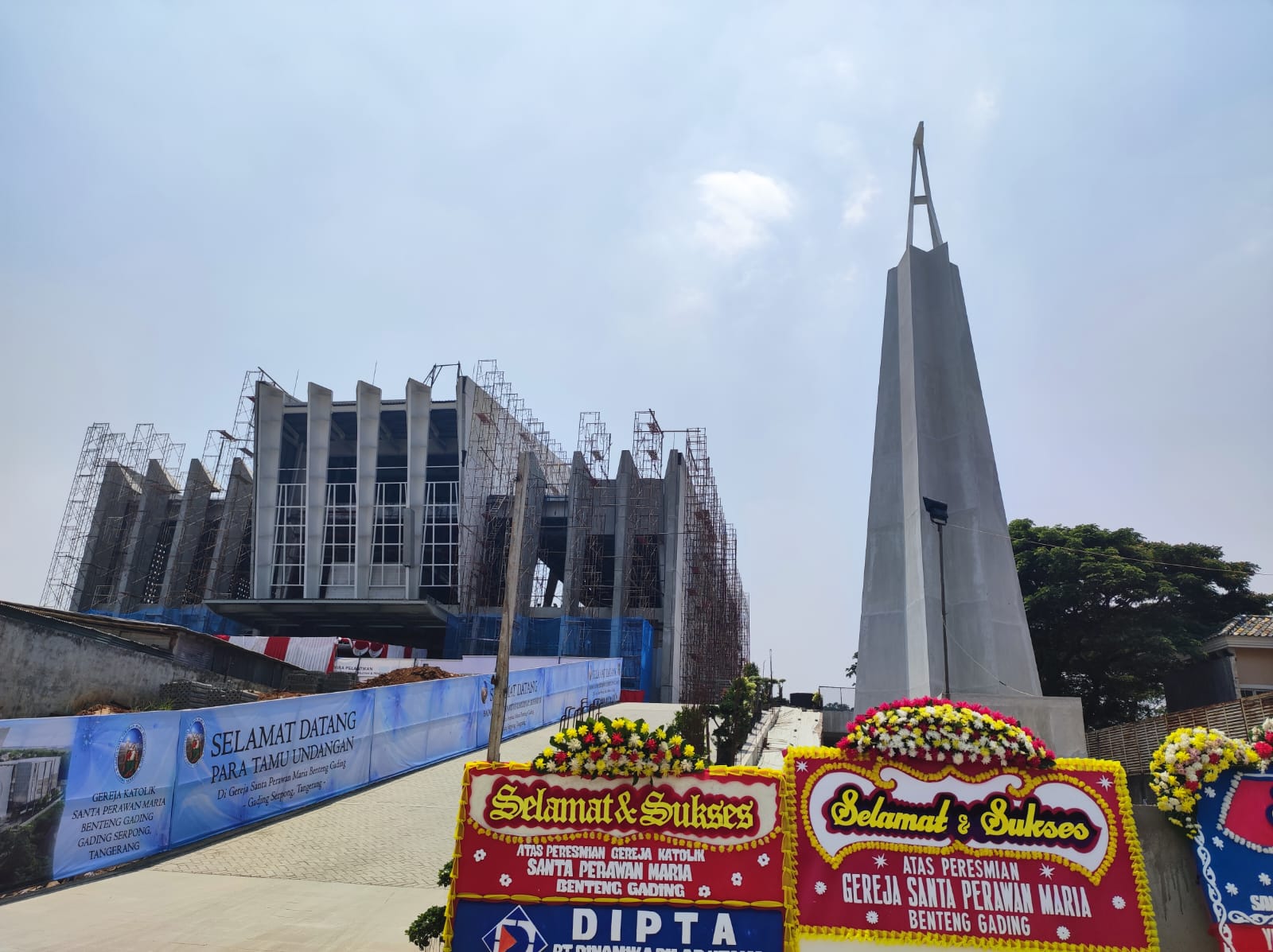 HIDUPKATOLIK.COM – Ketika menerima undangan Peresmian Gereja Santa Perawan Maria Benteng Gading, Gading Serpong, Paroki Alam Sutera, sempat bertanya-tanya, bukankah pembangunan gereja belum selesai. Beberapa hari lalu saat melintas di depan proyek, nampak banyak perancah masih berdiri di sekeliling bangunan. Tanda proyek belum selesai.