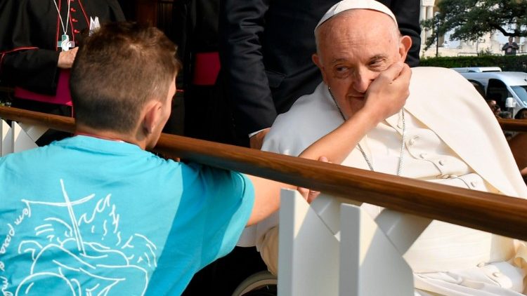 “Yesus datang dari penyembuhan orang lumpuh dan saat dia pergi dia menemukan pria bernama Matius. Injil mengatakan: “Dia melihat seorang pria bernama Matius.” Dan di mana pria ini? Duduk di kantor pajak. Salah satu dari mereka yang membuat orang-orang Israel membayar pajak, untuk memberikannya kepada orang-orang Romawi: seorang pengkhianat negaranya. Mereka dihina. Orang itu merasa dipandang rendah oleh Yesus. Dia berkata kepadanya, ‘Ikutlah aku.’ Dan dia bangkit dan mengikuti Dia. “Tapi apa yang terjadi? Itulah kekuatan tatapan Yesus. Tentunya dia memandang Dia dengan begitu banyak cinta, dengan begitu banyak belas kasihan: tatapan Yesus yang penuh belas kasihan: ‘Ikutlah aku, mari’. Dan yang lainnya melihat ke samping, dengan satu mata tertuju pada Tuhan dan mata lainnya tertuju pada uang, berpegang teguh pada uang seperti yang dilukis Caravaggio: begitu saja, melekat dan juga dengan tatapan masam dan kasar. Dan Yesus penuh kasih, penyayang. Dan perlawanan dari orang yang menginginkan uang – dia adalah budak uang – jatuh. “Dan dia bangun dan mengikuti Dia”. Ini adalah pertarungan antara belas kasihan dan dosa. Namun bagaimana kasih Yesus bisa masuk ke dalam hati orang tersebut? Apa pintu untuk masuknya? Karena laki-laki itu tahu bahwa dia adalah orang berdosa: dia mengetahuinya. Kondisi pertama yang harus diselamatkan adalah merasa dalam bahaya; syarat pertama yang harus disembuhkan, adalah merasa sakit. Merasa diri sebagai orang berdosa adalah syarat pertama untuk menerima tatapan penuh belas kasihan ini. Ada yang mungkin berkata, ‘Bapa, tapi benarkah merasa berdosa itu suatu anugerah?’ Karena itu adalah merasakan kebenaran. Namun bukan orang berdosa secara abstrak: orang berdosa karena ini, untuk ini, untuk ini. Dosa nyata, dosa nyata! Dan kita semua memiliki banyak dari mereka! Mari kita pergi ke sana dan biarkan Yesus memandang kita dengan tatapan belas kasihan penuh cinta… (Homili di Santa Marta, 21 September 2017).
