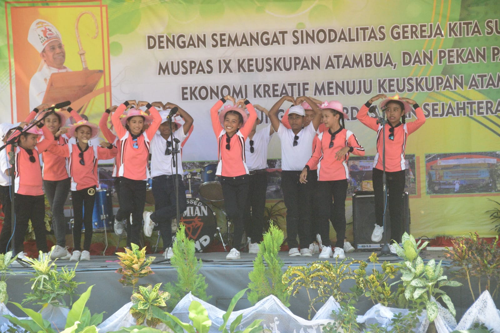 HIDUPKATOLIK.COM – Dalam upaya meningkatkan semangat pastisipasi anak dan remaja dalam hidup beriman, Seksi Serikat Kepausan dan Anak-anak dan Remaja Misioner (Sekami) menyelenggarakan lomba gerak dan lagu bagi anak PAUD dan SD dalam memeriahkan pekan pameran ekonomi kreatif Keuskupan Atambua di Lapangan seminari santa Mari Imaculata Lalian, Jumat (22/9/2023).