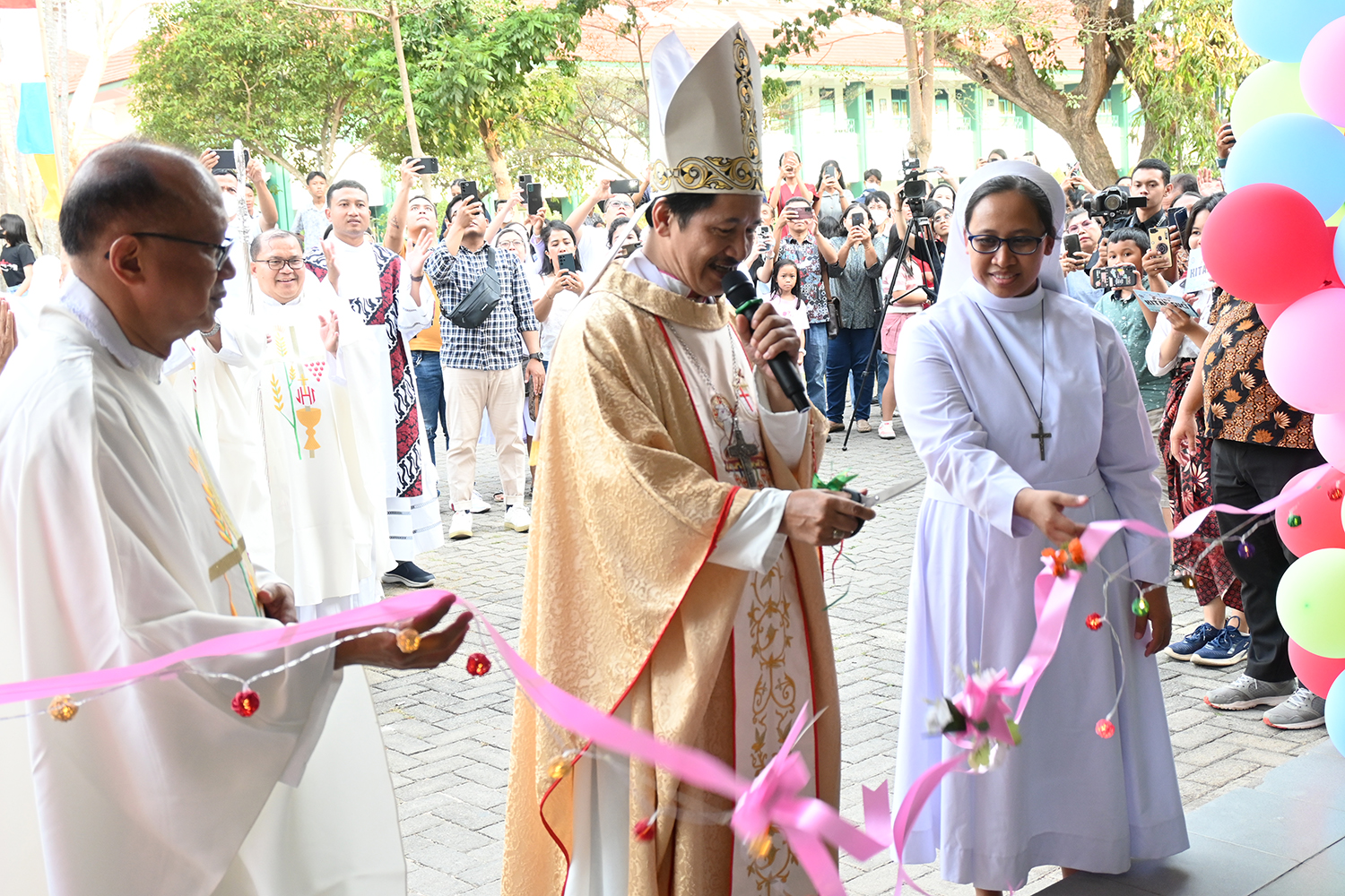 Usai Perayaan Ekaristi dilakukan pemotongan pita, tanda pasar Kitab Suci dibuka. Kegiatan ini sekaligus membuka bulan rosario.