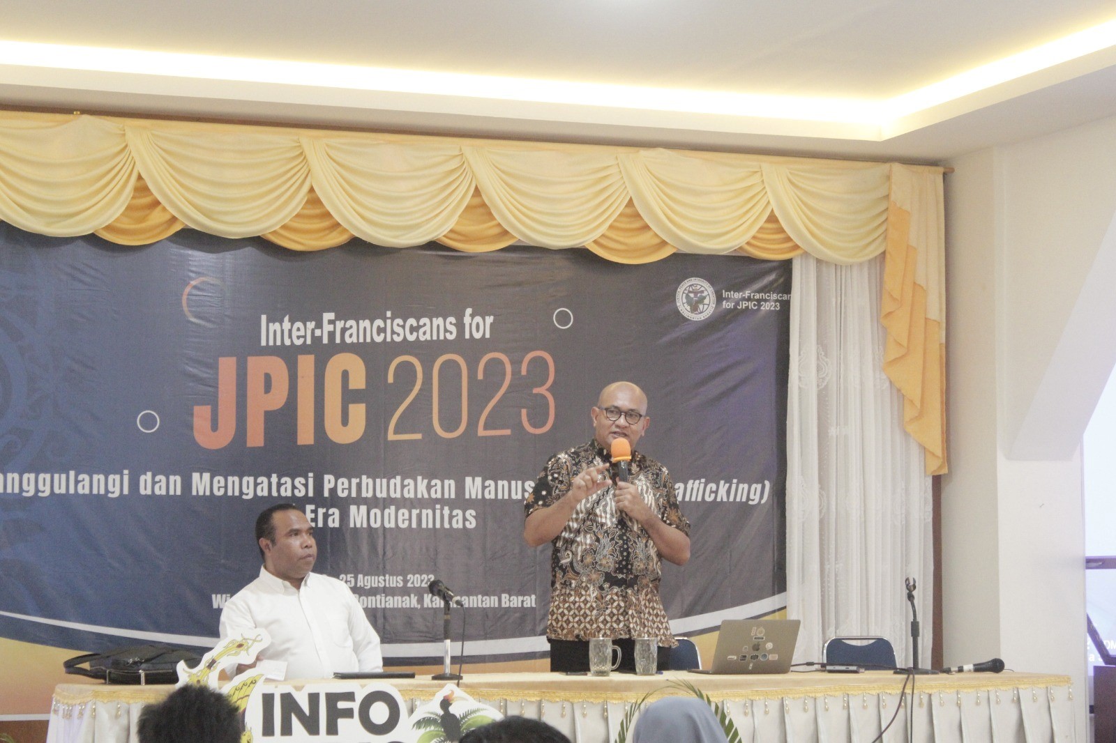 Romo Chrisanctus Paschalis Saturnus saat menjadi pembicara untuk sesi utama dalam tema Human Trafficking.