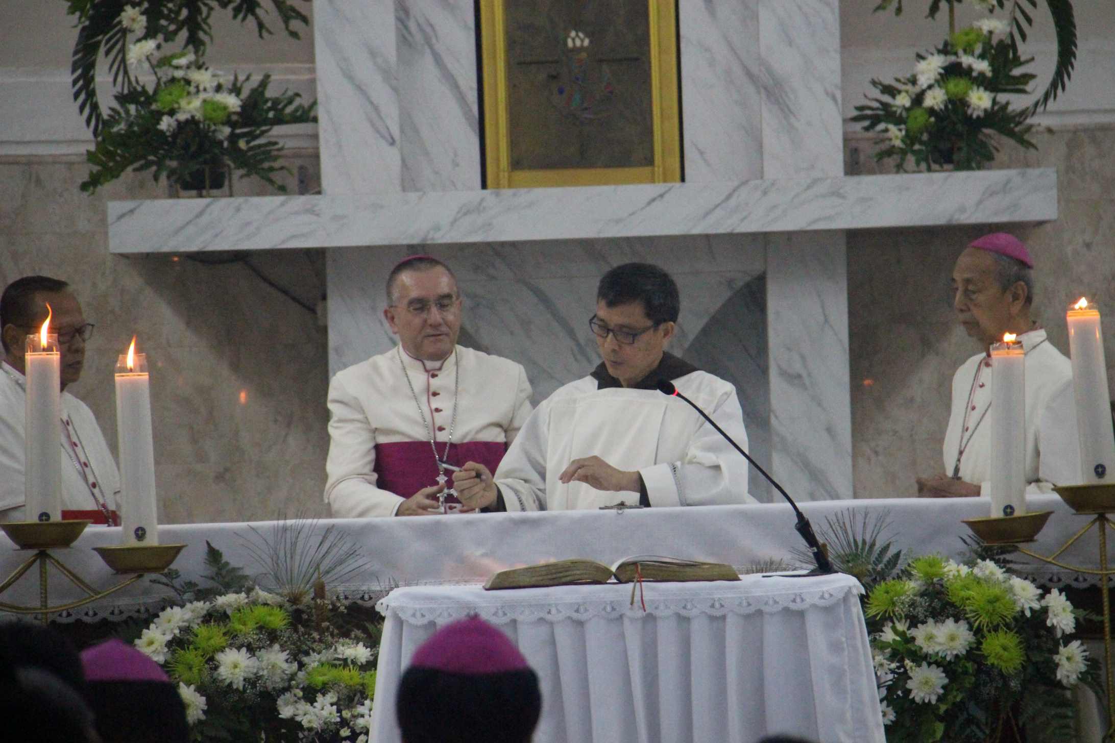 Bahkan Uskup Terpilih luar biasa karena mempunyai motto berkobar-kobar untuk melaksanakannya. Sebagai cahaya yang menerangi, sebagai suluh, menjadi obor yang tidak redup. Tentu dengan tujuan supaya mengalahkan kegelapan dosa dan mewartakan kebenaran, kasih, seperti diajarkan oleh Kristus” pungkasnya di akhir homili.