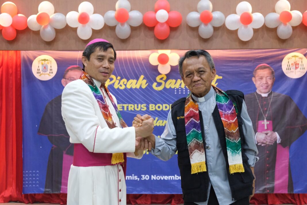 Dalam sambutannya, Uskup Victorius menyampaikan ucapan terima kasihnya kepada Uskup Timang yang telah menggembalakan Keuskupan Banjarmasin selama 15 tahun terakhir.