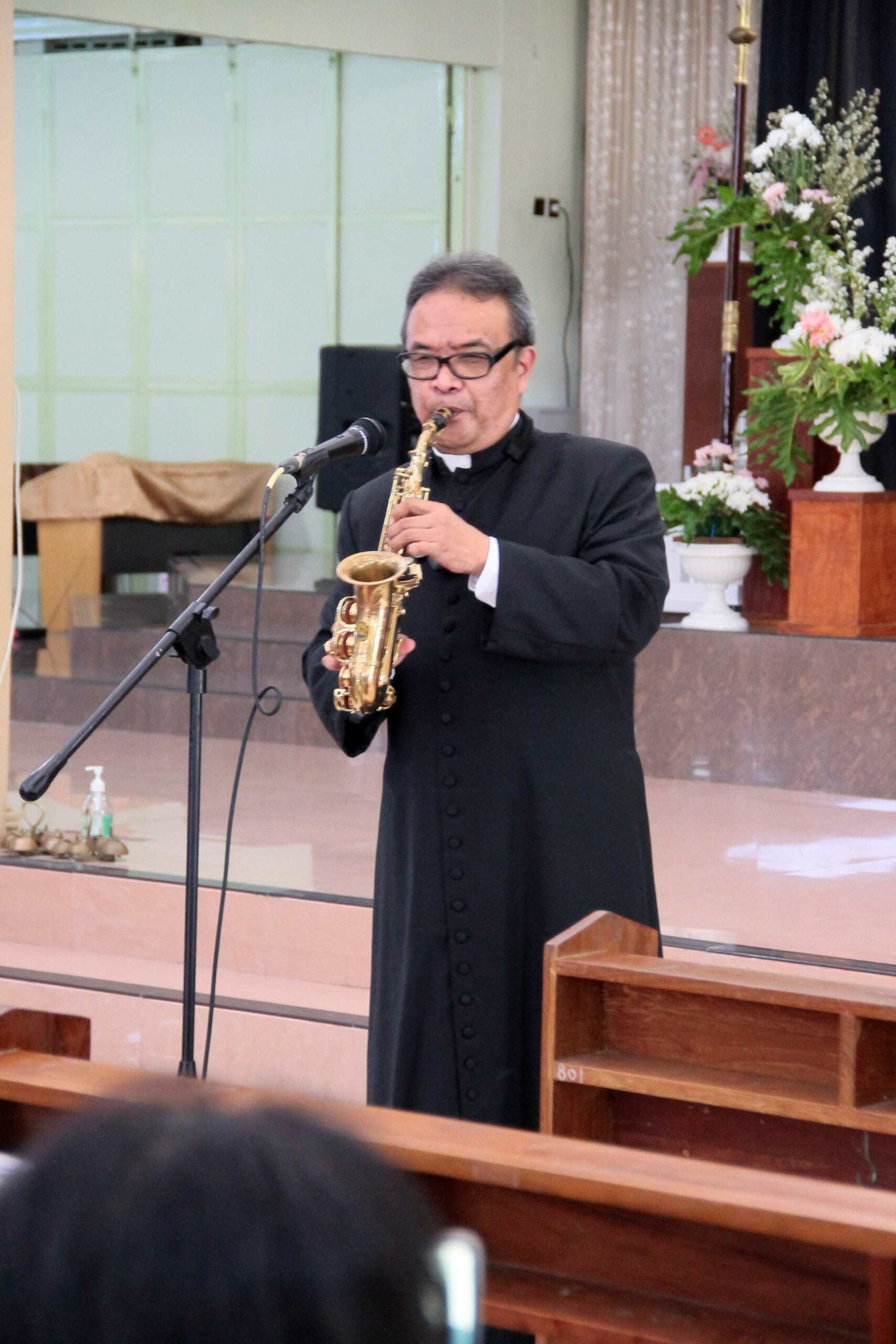 Romo Aloys Budi Purnomo, seorang tokoh budaya dan lingkungan, penulis, serta imam diosesan Keuskupan Agung Semarang yang mahir memainkan alat musik tiup saksofon, menjadi sosok puncak yang dinanti dalam rangkaian acara pada hari Minggu siang tersebut. Dibuka dengan sapaan hangat mengenai rasa syukur akan “keterlibatan” Allah dalam hidup kita sehari – hari sejak lahir, Romo Budi membawakan lagu Amazing Grace yang mendapat apresiasi meriah dari para tamu undangan.