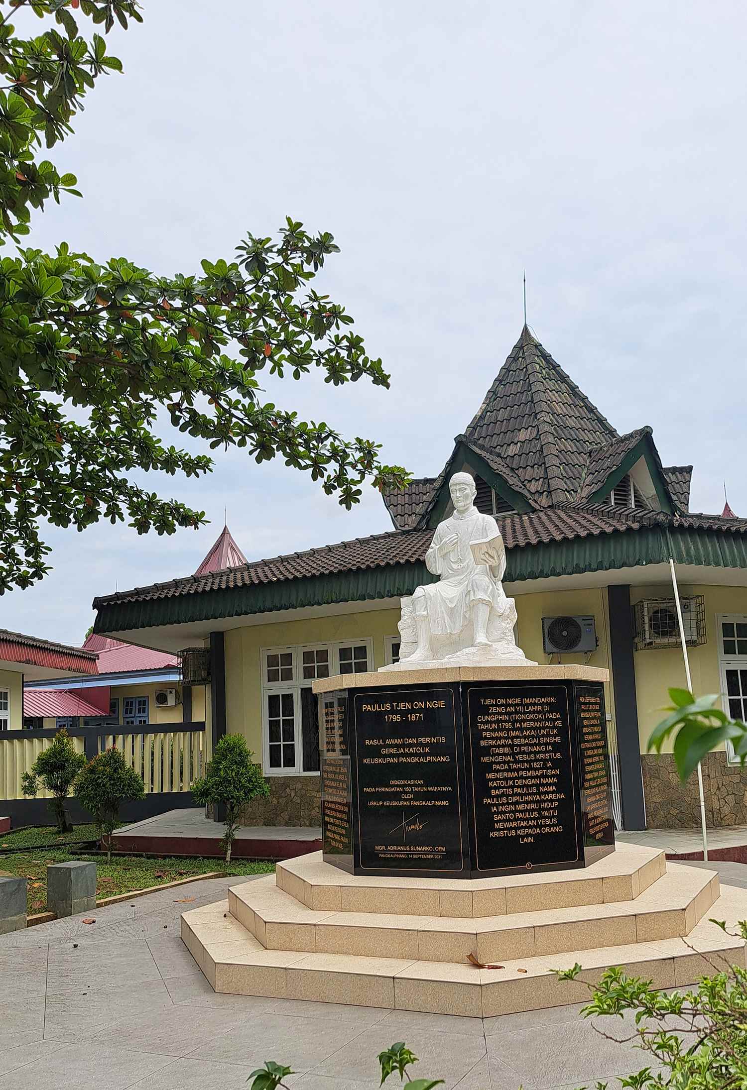 Sebelum tiba di Pulau Bangka, Paulus Tjen On Ngie terlebih dulu mengunjungi Malaka dan dibaptis di Penang pada tahun 1827. Jadi, misionaris pertama adalah seorang awam yang berasal dari Tiongkok. Dia adalah seorang tabib yang bekerja mengobati para kuli parit di tambang-tambang timah sekaligus memperkenalkan iman Kristiani Katolik. Kisah historis ini ini dikemukakan Uskup Sunarko dalam homilinya pada Puncak Perayaan 100 Tahun.