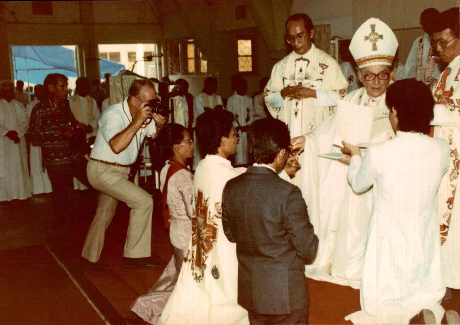 Semakin penasaran dengan kedatangan imam-imam itu, gedung gereja yang berpagar itu pun tak jadi halangan segeromblan anak kecil ini, terutama Frans kecil untuk mengamati para pastor. “Saya yang masih SD pun memanjat pohon untuk lihat Pastor, mirip-mirip Zakheus mau lihat Yesus,” sebutnya riang.