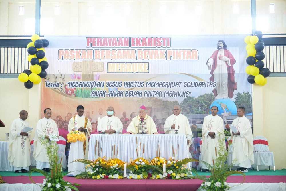Uskup Agung Merauke, Mgr Petrus Canisius Mandagi,MSC menyampaikan hal itu pada perayaan Paskah Bevak Pintar di Aula Petrus Vartenten MSC Center, Merauke Papua Selatan, Selasa, 9/4/2024. Tema dari Perayaan ini adalah “Kebangkitan Yesus Kristus Memperkuat Solidaritas Anak-anak Bevak Pintar Merauke”.