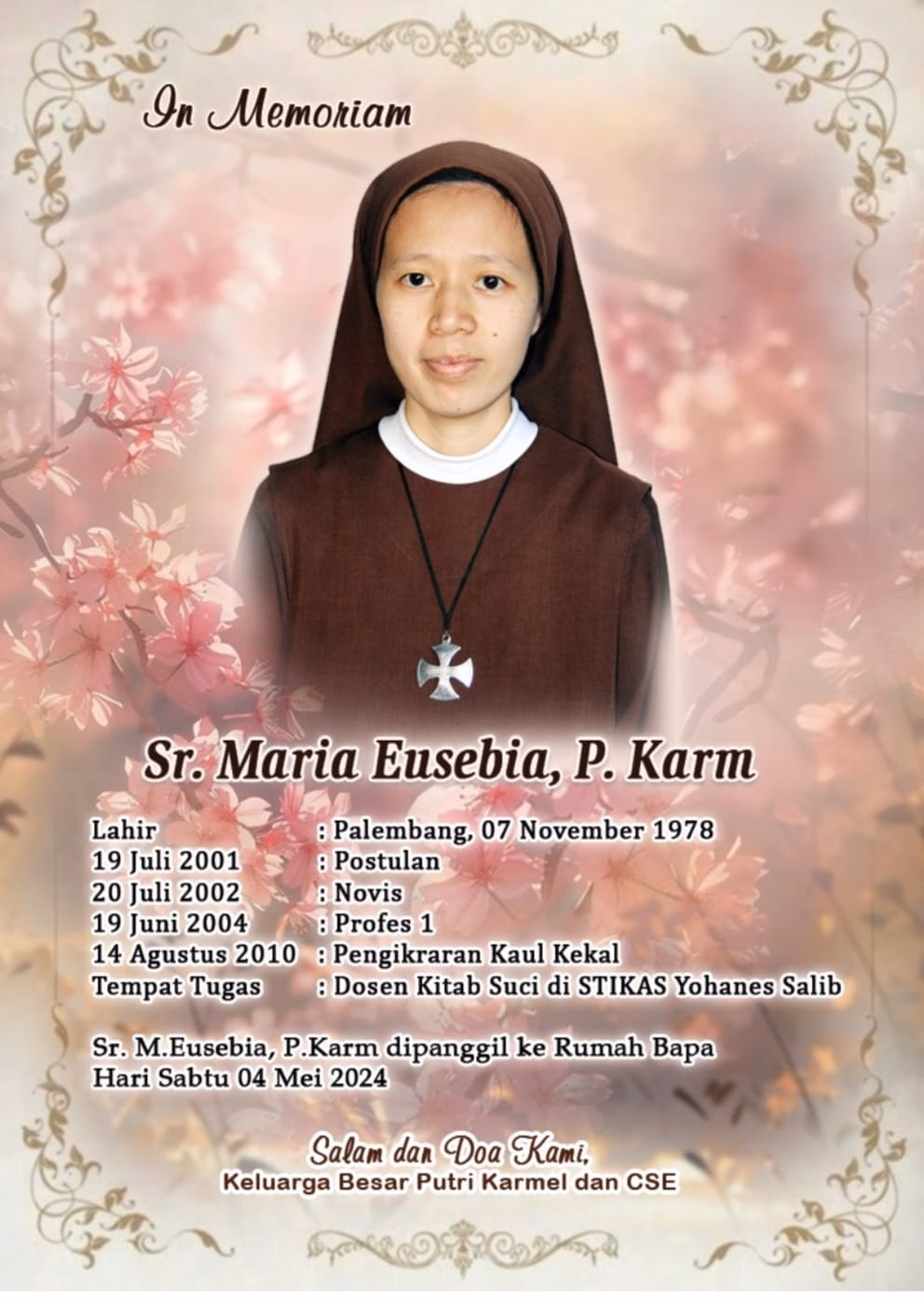 1. Selamat jalan ke rumah Bapa Suster. Selamat bersatu dengan Para Kudus di surga dan menjadi pendoa bagi kami.