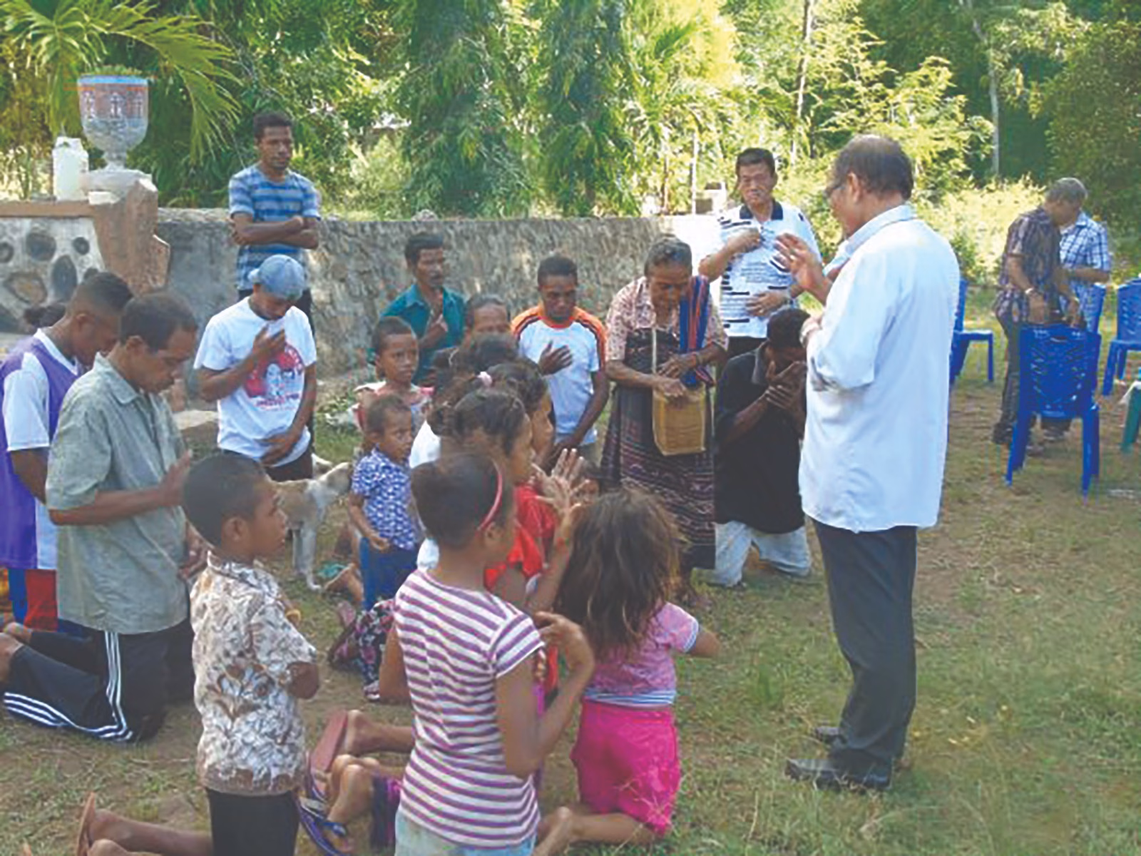 Mgr. Petrus Turang memberkati sekelompok umat dalam satu kunjungan.
