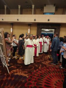 “Bapak Uskup sudah menyediakan lahan, kami diminta untuk membangun dan mengelola. Jadi malam ini kami melakukan penggalangan dana untuk itu. Dengan cara salah satunya melalui lelang lukisan, makan malam bersama para Bapak Uskup. Bisa dikatakan malam ini charity event, charity dinner.”