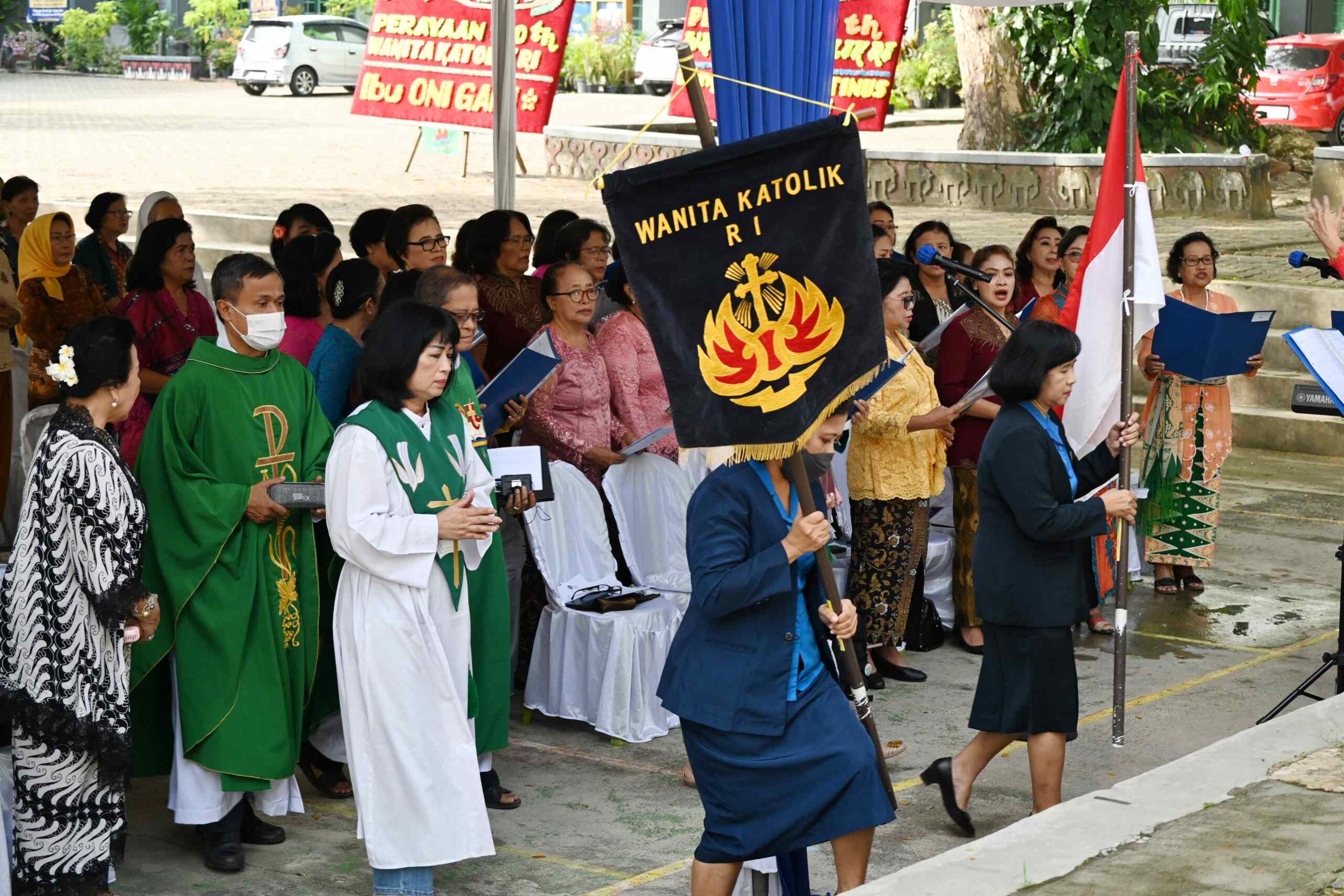 HIDUPKATOLIK.COM – Perarakan dua vandel Merah Putih dan WKRI beserta dua pastor menuju altar. Selasa pagi, 26/6/2024 WKRI DPC Tanjungkarang mengadakan syukur atas HUT Ke-100 WKRI. Perayaan Syukur ini dipimpin oleh Pastor Bambang Condro (Pastor Rekan di Paroki Katedral Kristus Raja) didampingi Pastor Andreas Sutrisno (Ketua Yayasan Xaverius).