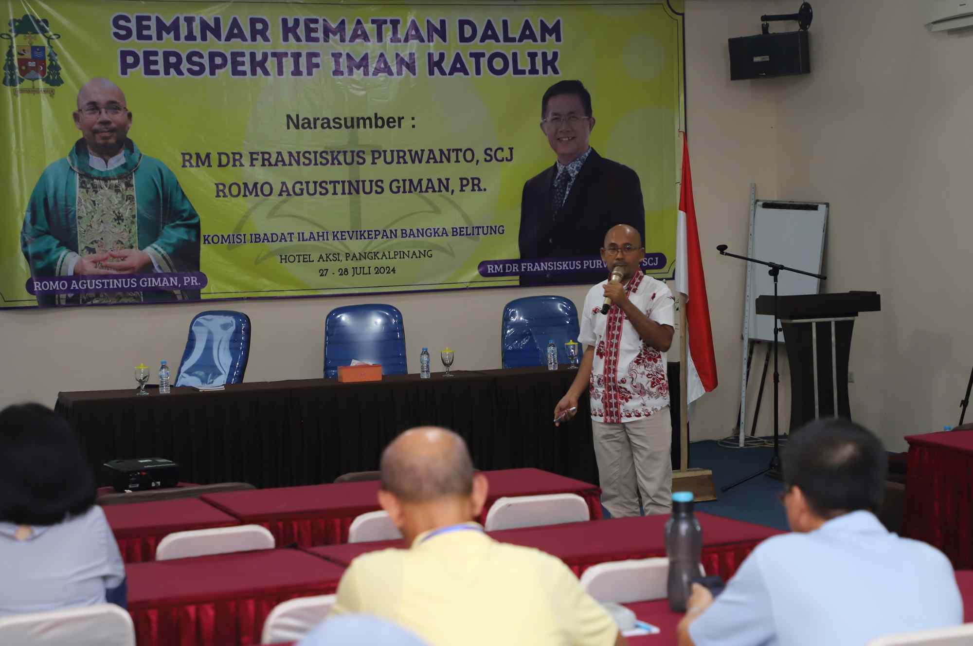 “Semoga melalui seminar ini, umat Katolik di wilayah Kevikepan Bangka Belitung memperoleh pemahaman lebih dalam tentang peristiwa kematian dan kehidupan kekal, serta dapat menghadapi misteri ini dengan iman yang teguh dan hati terbuka yang penuh harapan,” tutur Ketua Komisi Ibadat Ilahi Kevikepan Bangka Belitung Keuskupan Pangkalpinang, Pastor Martinus Handoko.