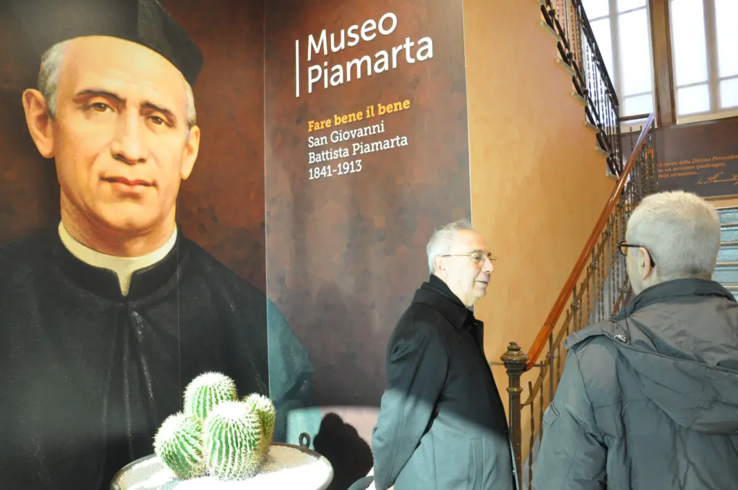 Di bawah jendela Basilika, di antara pilar-pilar, gambar para santo santa itu dipasang. Sosok pastor dengan jubah hitam, memegang Kitab Suci di tangan kanannya, salib di tangan kiri, tersenyum kebapakan, dengan para pemuda sedang bekerja menjadi latar belakangnya adalah Santo Giovanni Battista Piamarta.
