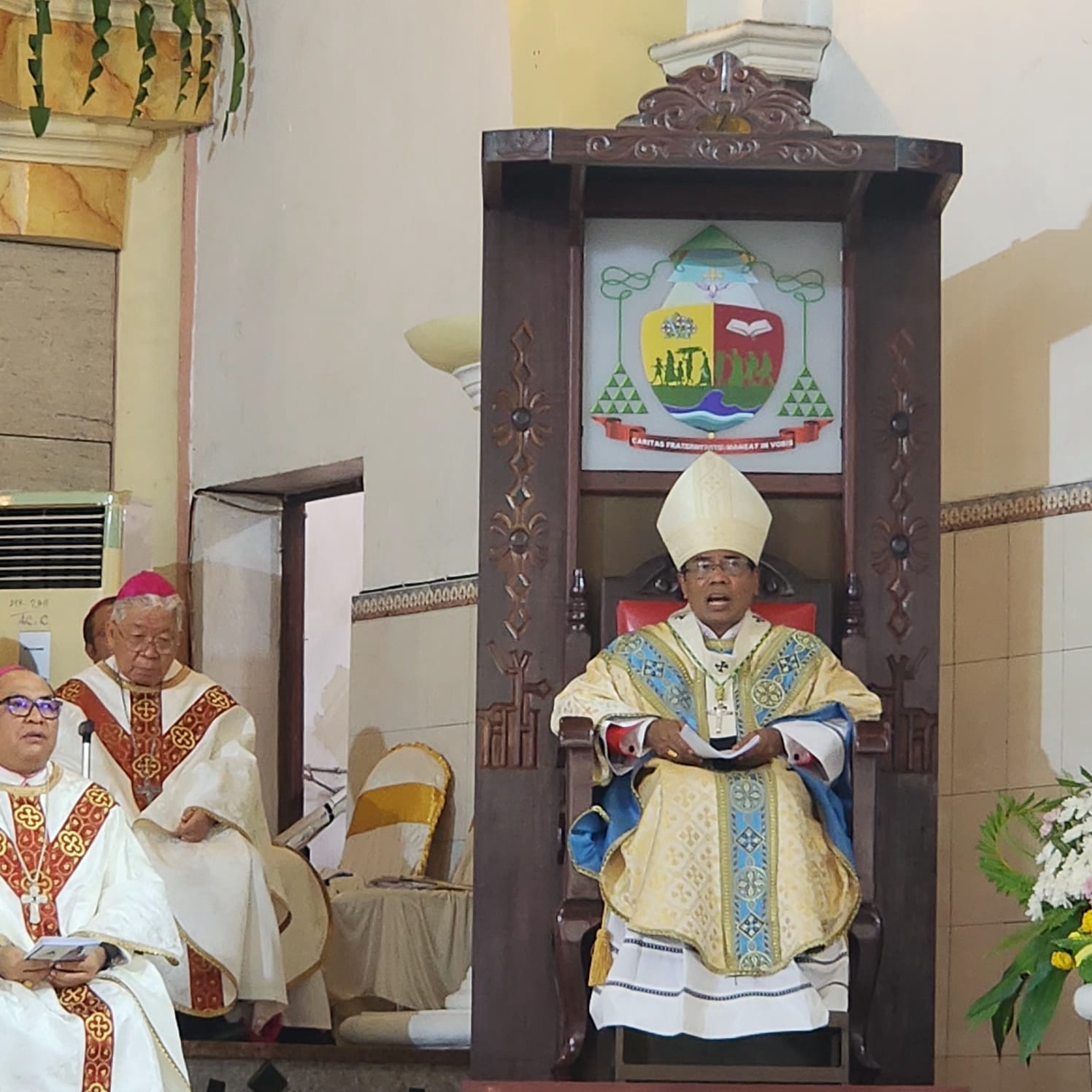 HIDUPKATOLIK.COM – GEMURUH tepuk tangan umat memenuhi Katedral Kristus Raja Ende, Flores, Nusa Tenggara Timur. Mereka tengah merayakan momen pembacaan surat dari Nuncio Piero Pioppo di Jakarta yang berisi penunjukan Uskup Agung Ende baru. Vikaris Jenderal Keuskupan Agung Ende (KAE), Yosef Daslan Moang Kabu, memimpin upacara pengumuman pada Sabtu, 25/5, yang mengakhiri masa sede vacante KAE sejak wafatnya Mgr. Vinsensius Sensi Potokota pada November lalu. Keputusan resmi Takhta Suci memilih Paulus Budi Kleden, SVD, telah menjawab doa-doa dan mengakhiri enam bulan penantian penuh harap umat KAE. Sorak gembira pun ramai memenuhi media sosial.