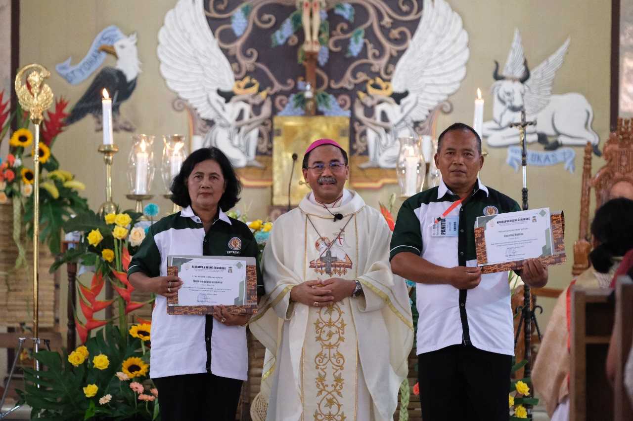 Setelahnya dilakukan perayaan Ekaristi Syukur dipimpin Mgr. Robertus didampingi oleh 15 pastor yang berkarya di KYB. Dalam kesempatan Ekaristi itu dilakukan pemberian penghargaan kepada dua orang wakil katekis/guru agama yang telah berkarya lebih dari 25 tahun. Mereka berdua mewakili 67 orang katekis lainnya yang telah melayani lebh dari 25 tahun. Mereka adalah Cecarius Mujiran, S. Ag. (Paroki Boro), berkarya sejak tahun 1979 dengan menjadi pengajar agama/katekis di Kapel Gorolangu. Kedua, Maria Magdalena Suyatini, (Paroki Keluarga Kudus Banteng) menjadi katekis sejak tahun1985.