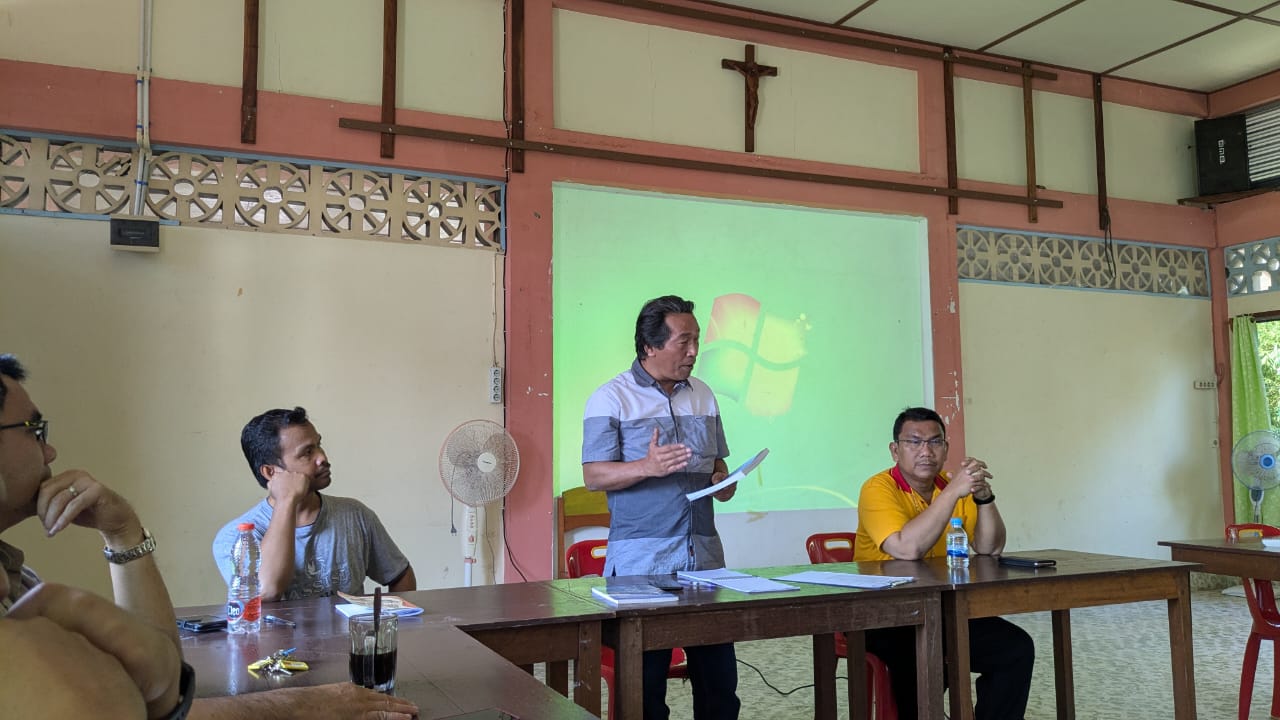 Vikaris Jenderal Keuskupan Sibolga (berdiri0 menginformasikan hal-hal teknis yang akan dilakukan oleh Tim perumus hasil sidang sinode Keuskupan Sibolga.