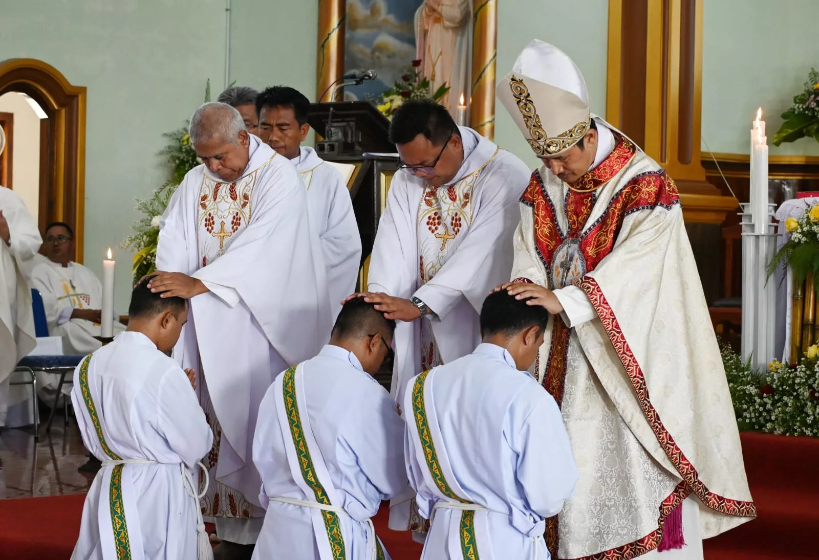 HIDUPKATOLIK.COM – Uskup Tanjungkarang Mgr. Vinsensius Setiawan Triamojo menahbiskan imam di Gereja St. Maria, Pajar Mataram, Lampung Tengah, Kamis, 21 November 2024. Mereka adalah Pastor Fransiskus Xaverius Hendri Firmanto (Paroki Keluarga Kudus Baradatu, Keuskupan Tanjungkarang), Pastor Marys Vincentius Namapadji Kopong Daten (Paroki Sta. Maria Mater Dolorosa SoE, Keuskupan Agung Kupang), dan Pastor Chosmas Oswyn Koba (Paroki Emanuel Welamosa, Keuskupan Agung Ende).