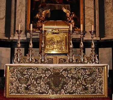 HIDUPKATOLIK.COM – Kita pasti sering melihat altar yang ditutup kain hingga menjuntai ke lantai. Tapi apakah kita tahu apa nama, fungsi dan artinya? Mari kita bahas tentang Antependium.