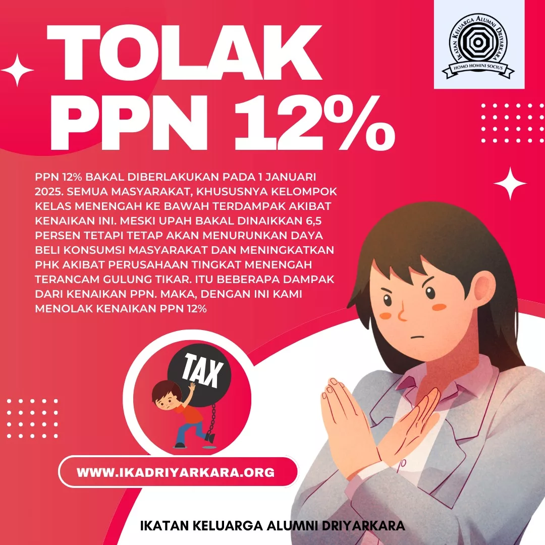 “Kami, Ikatan Keluarga Alumni Driyarkara (IKAD), menyampaikan keprihatinan mendalam atas rencana pemerintah menaikkan Pajak Pertambahan Nilai (PPN) menjadi 12 persen mulai Januari 2025. Setelah mempertimbangkan situasi ekonomi dan sosial masyarakat Indonesia saat ini, kami dengan tegas menyatakan: