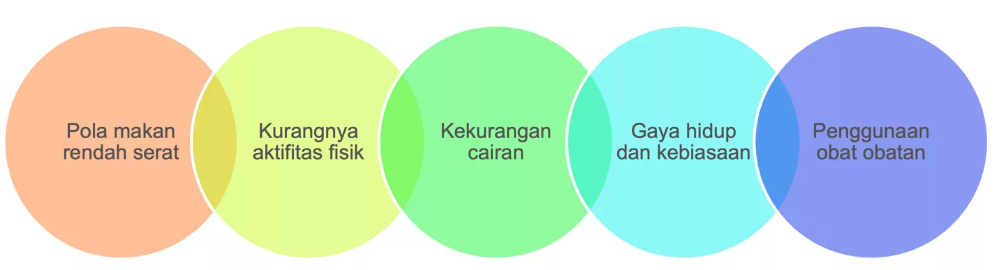 - Penggunaan obat-obatan: Seperti opioid, antikolinergik, dan suplemen zat besi.