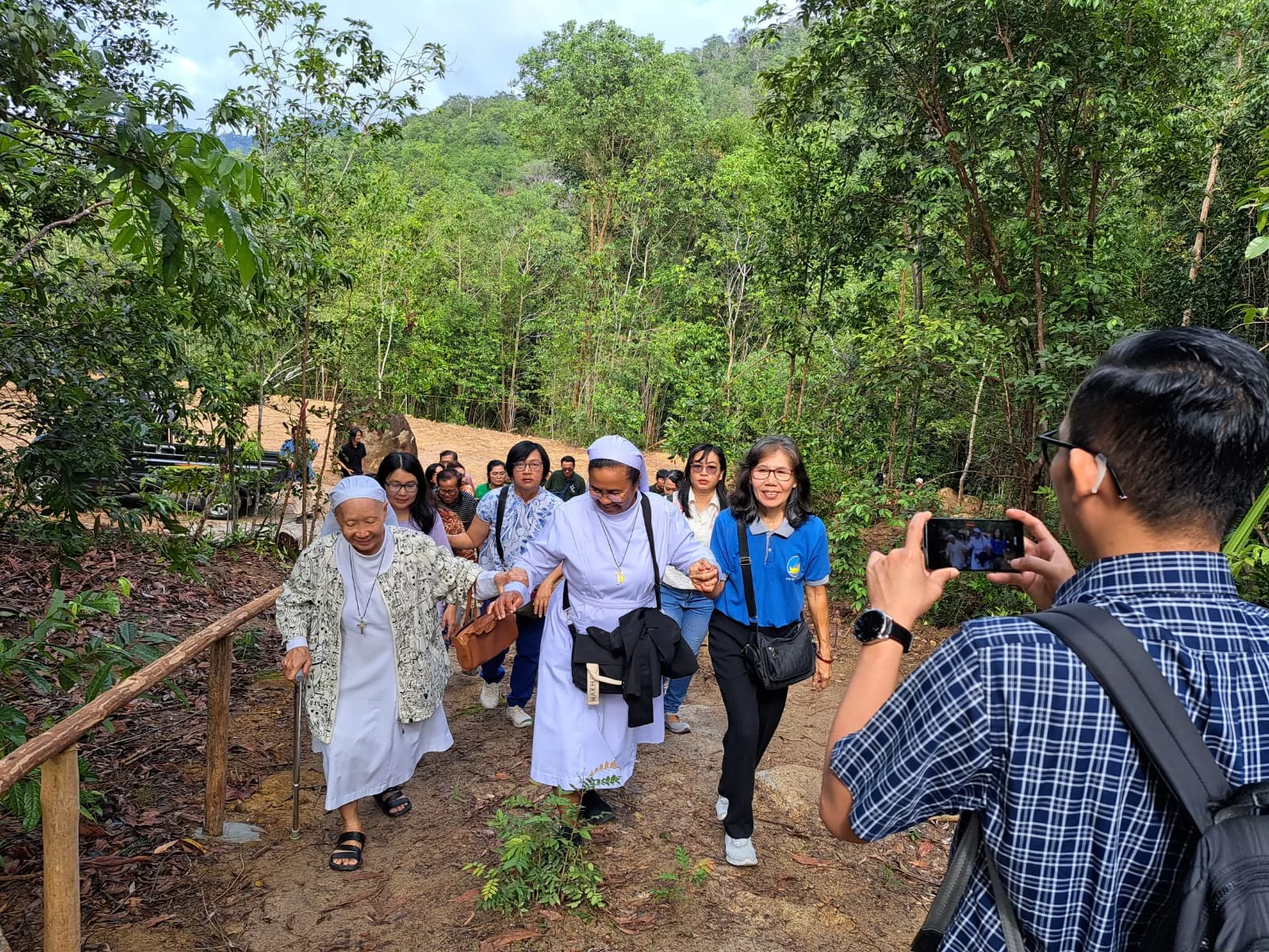 Perjalanan menuju lokasi peletakan batu pertama tidaklah mudah. Dimulai dari titik kumpul di gedung penerimaan atau lobi TBS, uskup bersama para imam, para suster dan umat mesti melewati sebagian jalan tanah berbatu yang cukup terjal. Cukup menantang dan sedikit melelahkan. Namun, semangat dan harapan tak surut sedikitpun. Tantangan dan kesulitan berhasil dikalahkan.