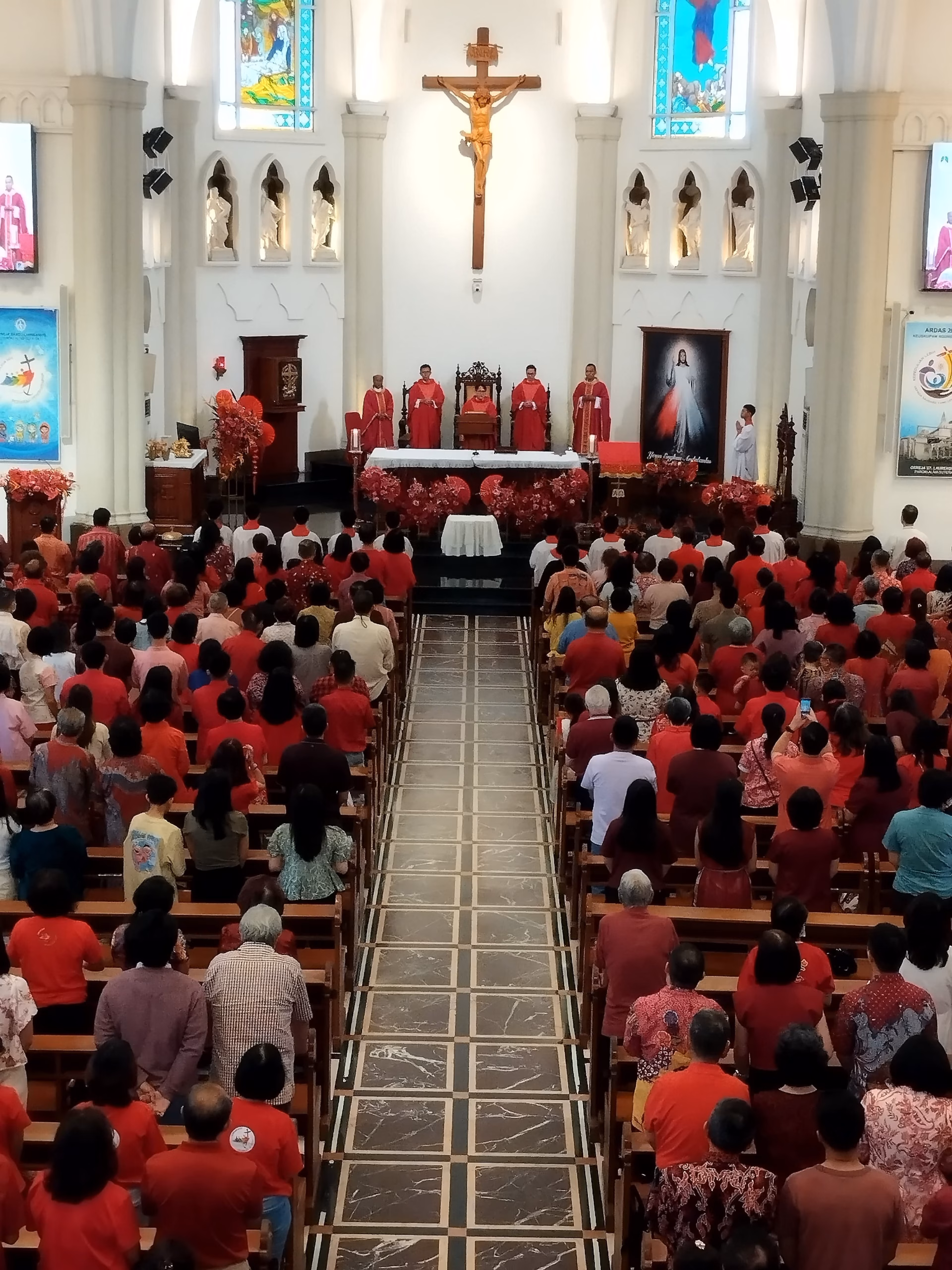 Kemeriahan dan sukacita masih berlanjut setelah berkat penutup. Kelima pastor berbaur dengan umat yang mulai keluar dari gereja. Empat pastor menyebar di sekitar teras pintu utama gereja, sedangkan Pastor Yudi memilih berbaur dengan umat di plaza gereja. Mereka membagi-bagi angpao kepada anak-anak. Suasana sangat ramai, penuh sukacita saling mengucapkan Gong Xi. Senyum dan tawa ria terpancar dari semua wajah.