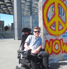 HIDUPKATOLIK.COM – DI bawah sinar matahari yang hangat, seorang pemuda berambut coklat seperti kulit kacang kastanye tengah duduk di kursi roda dengan sikap santai, mengenakan kemeja biru muda yang melambai lembut tertiup angin. Tangannya bertumpu dengan ringan di sandaran, seolah dunia ada dalam genggamannya. Senyum tipis menghiasi wajahnya, sementara kacamata hitam menyembunyikan matanya yang mungkin tengah berbinar. Di sampingnya, dinding penuh coretan sejarah menampilkan lambang perdamaian besar dengan kata “NOW” yang mencolok-seakan menyuarakan semangatnya yang tak terbatas oleh roda di bawahnya. Ia tak melihat kursi roda itu sebagai batasan, melainkan sebagai bagian dari perjalanannya, tempat ia tetap berdiri tegak di dunia ini, dengan hati yang penuh sukacita.