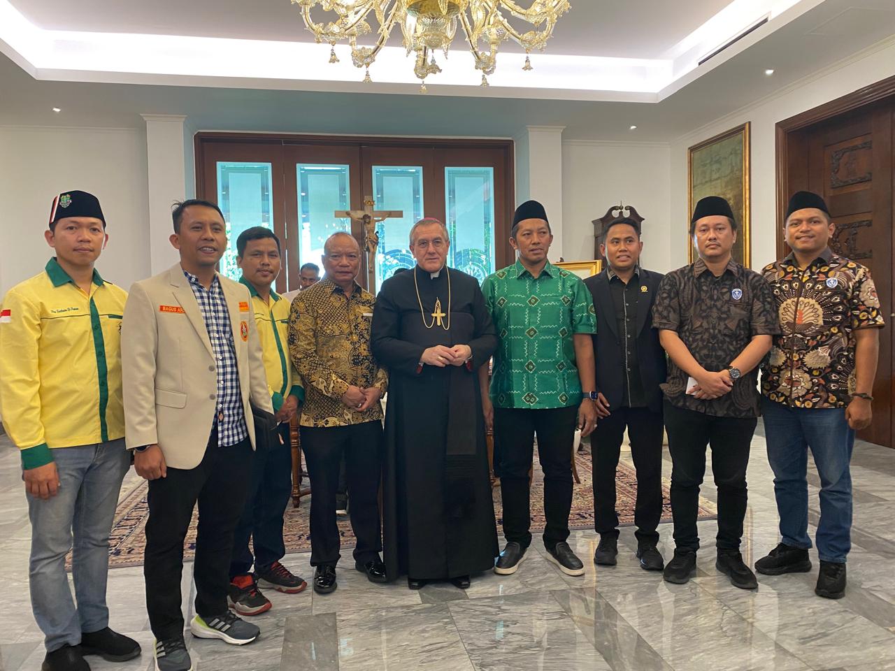 “Terima kasih atas penghormatan yang sangat tinggi dari organisasi pemuda lintas agama. Paus sangat mencintai Indonesia dengan keberagamannya, Indonesia selalu ada di hati Paus,” ucap Mgr. Pioppo setelah menerima para pimpinan ormas yakni GP Ansor, Pemuda Muhammadiyah, Pemuda Katolik (PK), Gerakan Angkatan Muda Kristen Indonesia (GAMKI), Persatuan Pemuda Hindu Indonesia (Peradah), Buddha (Gemabudhi), dan Konghucu (Gemaku).