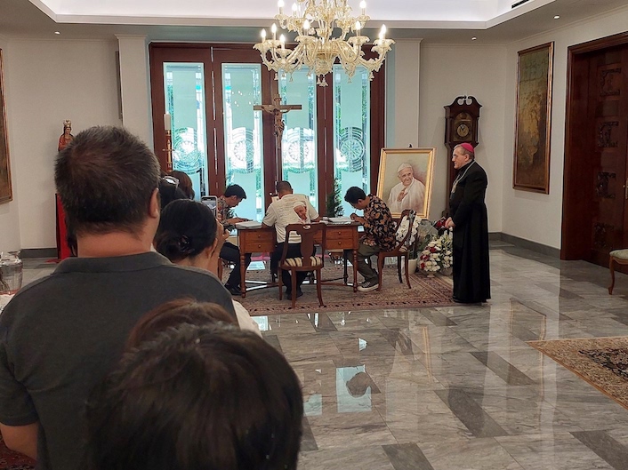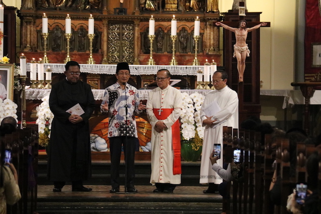 Nasaruddin tak sendiri. Uskup Agung Jakarta, Kardinal Ignatius Suharyo; Sekretaris Keuskupan Agung Jakarta, Pastor Vincentius Adi Prasojo; dan Kepala Paroki Katedral, Pastor Albertus Hani Rudi Hartoko, SJ tampak mendampinginya.