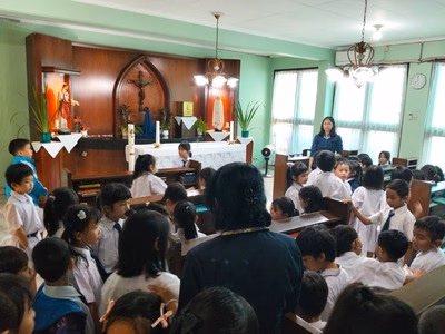 Sr. Evarista, CB selaku Pimpinan Komunitas Biara Immaculatta menyambut baik anak-anak yang datang. Beliau sangat senang dengan respon dan tingkah lucu peserta didik yang sangat antusias mengenal lebih dalam tentang karya pelayanan Suster CB.