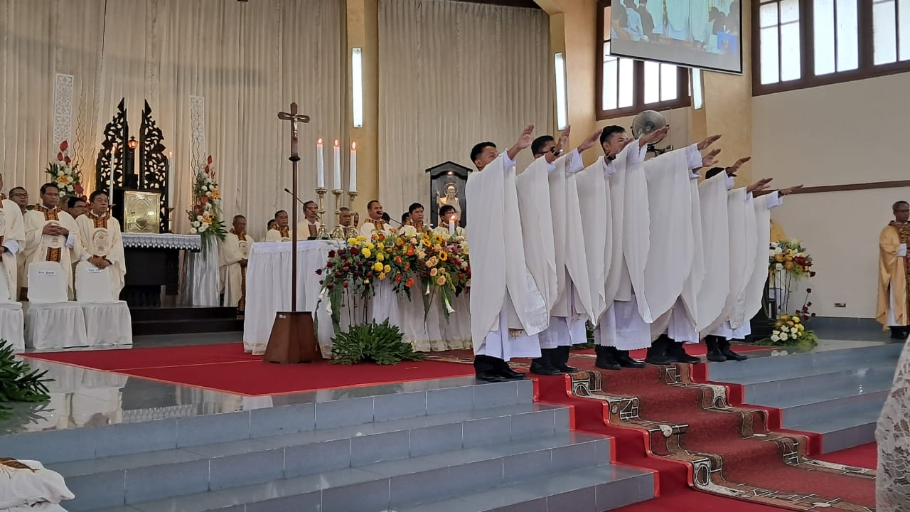 HIDUPKATOLIK.COM – Bertempat di Kapel Seminari Tinggi Santo Paulus, Kentungan, Yogyakarta pada hari Jumat (27/6/25) telah berlangsung acara Tahbisan Imam bagi 5 Diakon Calon Imam Diosesan KAS (Keuskupan Agung Semarang). Diakon yang ditahbiskan sebagai imam baru oleh Uskup Agung KAS, Mgr. Robertus Rubiyatmoko adalah Fransiskus Diky Palmana, Aloysius Gonzaga Ristata Kusnar P., Benedictus Adiatma Murti Wibowo, Benedictus Aditya Relliantoko, dan Benedictus Tri Widiatmaka. Mgr. Robertus memimpin Perayaan Ekaristi Tahbisan Imam didampingi oleh Rektor Seminari Tinggi St. Paulus Yogyakarta Pastor A. Dwi Aryanto dan Vikjen KAS, Pastor FX Sugiyana.