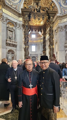 Tidak ingin menonjol, alih-alih jadi selebritas. Tayangan lengkap Komsos KWI Katedral Jakarta tentang perjalanan Kardinal Suharyo saat mengikuti konklaf keterpilihan Paus Leo XIV, di media mainstream dan media sosial lain, baginya mungkin kekecualian. Ia toh tetap humble, apa adanya, sederhana. Didampingi Pastor Vincentius Adi Prasodjo, — Sekjen KAJ– dan tas tote plastik warna biru di tangan kanan, ia menjawab pertanyaan media internasional yang merubungnya. “Isi tas plastik itu mungkin permen yang siap dibagi-bagi,” seloroh Sr. Christina Sri Murni, FMM, adik kandung Kardinal Suharyo yang saat ini berkarya di Bogor, kakak si bungsu Sr. Maria Magdalena Marganingsih, PMY yang berkarya di Wonosobo — dua adik Kardinal Suharyo yang masuk biara selain Suibertus Arie Sunardi, OCSO almarhum.