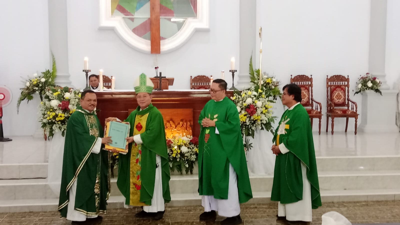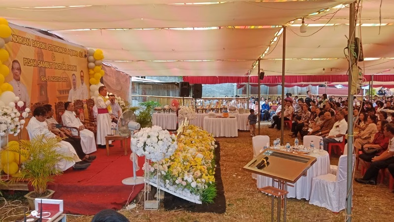 Peresmian Paroki Sea dilakukan dalam misa di gereja dan dilanjutkan dengan acara syukuran di bangsal halaman depan gereja, Minggu (3/8/2025).