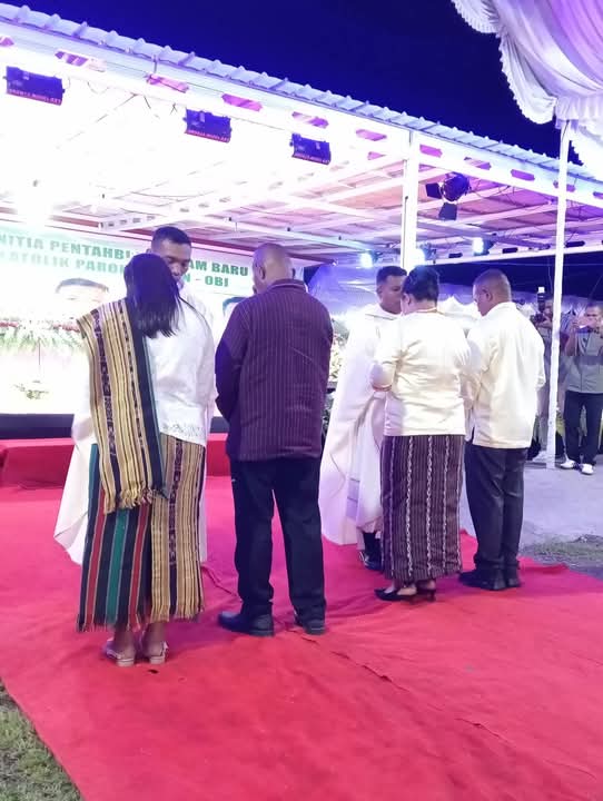 Dom, Pastor Martin Harun, OFM dan Pastor Mikael Peruhe, OFM berfoto bersama. (Dok. Bernadeth Amorita Manulyu)