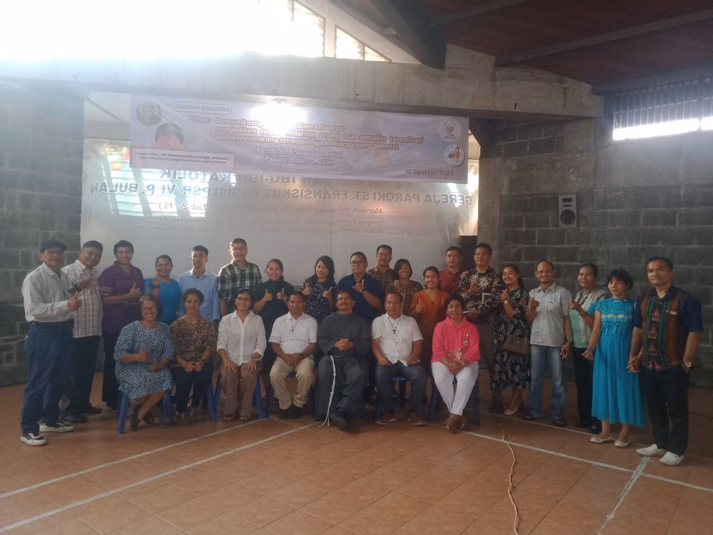 HIDUPKATOLIK.COM – Puluhan pasutri yang berusia perkawinan 0 – 15 tahun atau lebih mengikuti Seminar Keluarga di di Aula Paroki St. Fransiskus Assisi, Padang Bulan, Medan, Minggu, 10/8/2025. Ketua Komisi Keluarga Keuskupan Agung Medan, Pastor Gindo Gervatius Saragih, OFMConv menjadi narasumber.