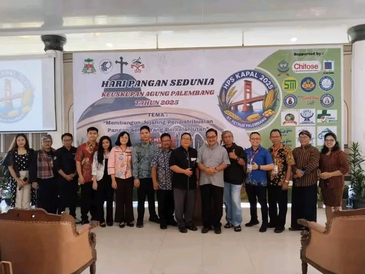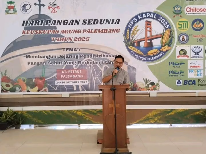 HIDUPKATOLIK.COM – Dalam upaya mewujudkan pertobatan ekologis dan ketahanan pangan berbasis komunitas, Komisi Pengembangan Sosial Ekonomi (PSE) Keuskupan Agung Palembang (KaPal) menyelenggarakan rangkaian Perayaan Hari Pangan Sedunia (HPS) tahun 2025. Mengangkat tema sentral “Membangun Jejaring Pendistribusian Pangan Sehat Yang Berkelanjutan,” perayaan akbar ini berlangsung selama tiga hari penuh, dari Jumat – Minggu (24-26/10/2025) dan dipusatkan di Gereja Paroki Santo Petrus, Jalan Betawi Raya Sako Kenten Sematang Borang, Palembang.